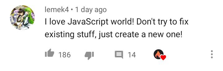 If you find this site serviceableness, please support us by sharing this posts to your preference social media accounts like Facebook, Instagram and so on or you can also Get this blog page with the title Javascript Memes Reddit by using Ctrl + D for devices a laptop with a Windows operating system or Command + D for laptops with an Apple operating system. If you use a smartphone, you can also use the drawer menu of the browser you are using. Whether it's a Windows, Mac, iOS or Android operating system, you will still be able to bookmark this blog.